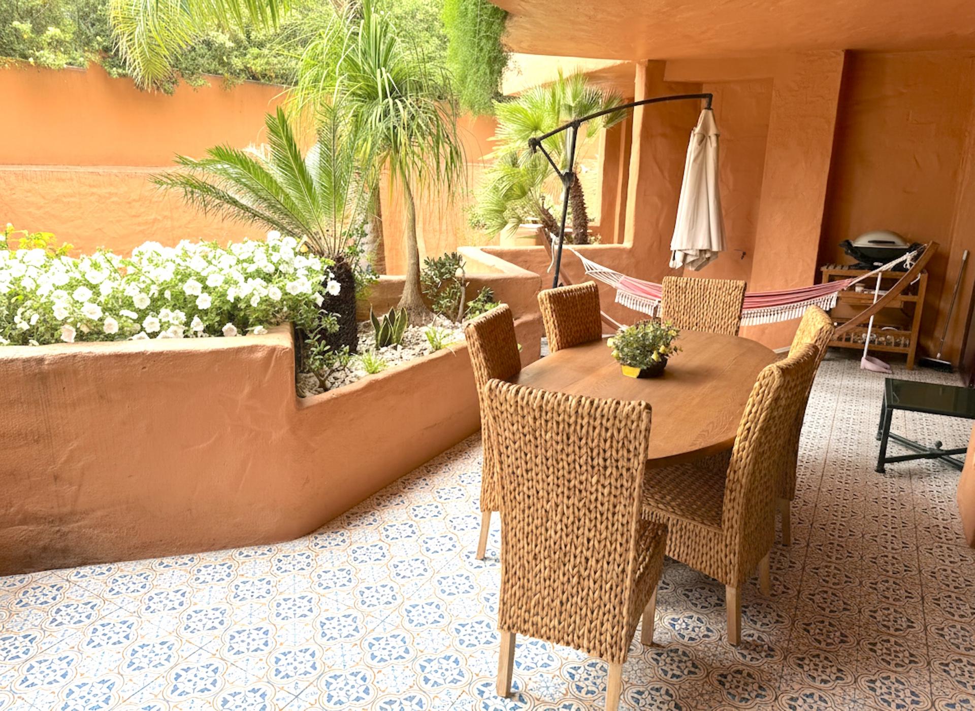 Appartement à vendre à Melia Hacienda del Mar, Estepona Est avec 2 chambres , 2 salles de bain, 1 toilette, construit en 1999 et a piscine (communautaire), garage (communautaire) et jardin (communautaire). Dimensions: 201m² construit, 170.8m² intérieur et 31m² terrasse.
