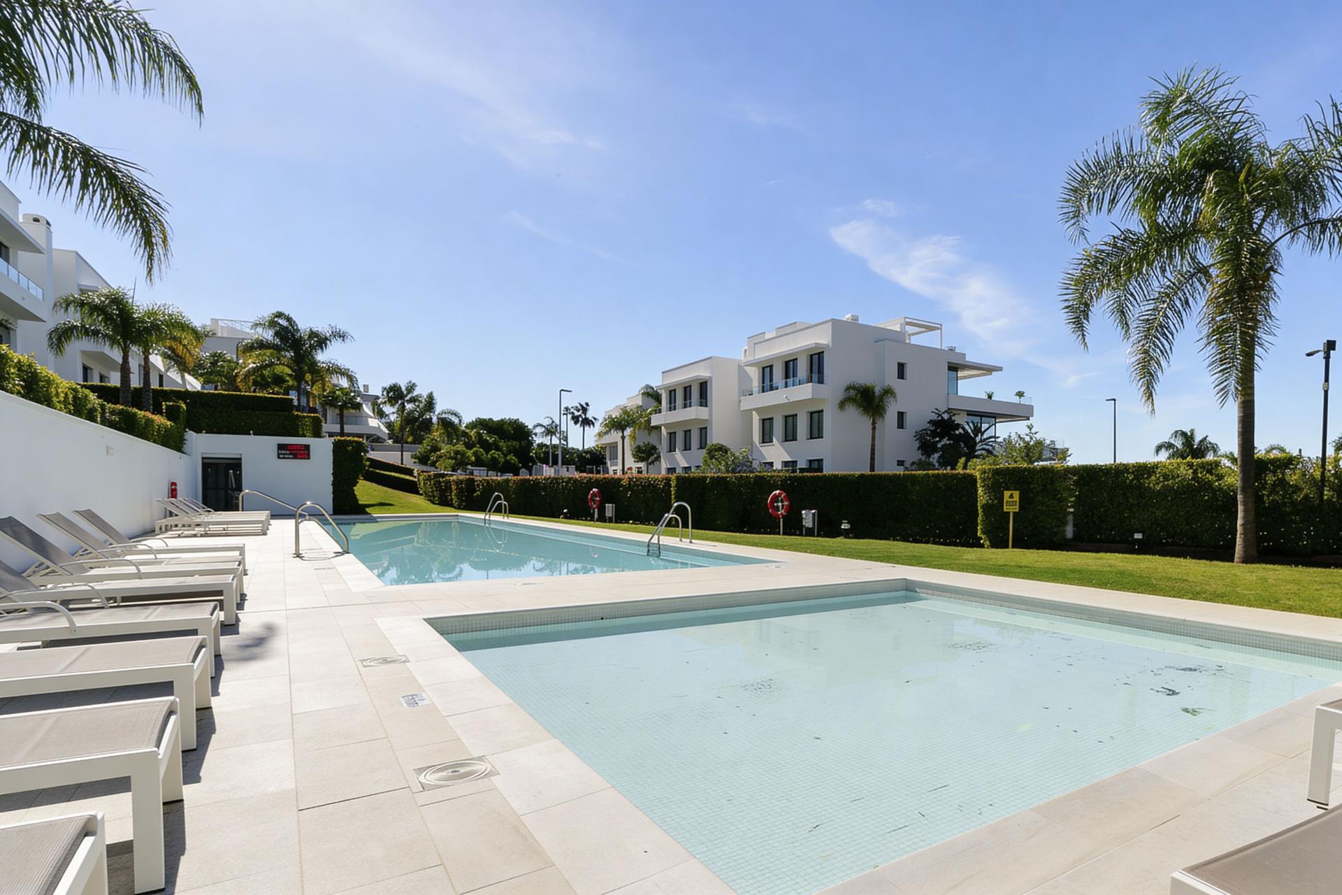 Appartement à vendre à New Golden Mile, Estepona Est avec 3 chambres , 2 salles de bain, 1 en-suite bathroom, 2 toilettes, construit en 2019 et a piscine (communautaire) et jardin (communautaire). Dimensions: 123m² construit, 104m² intérieur et 78m² terrasse.