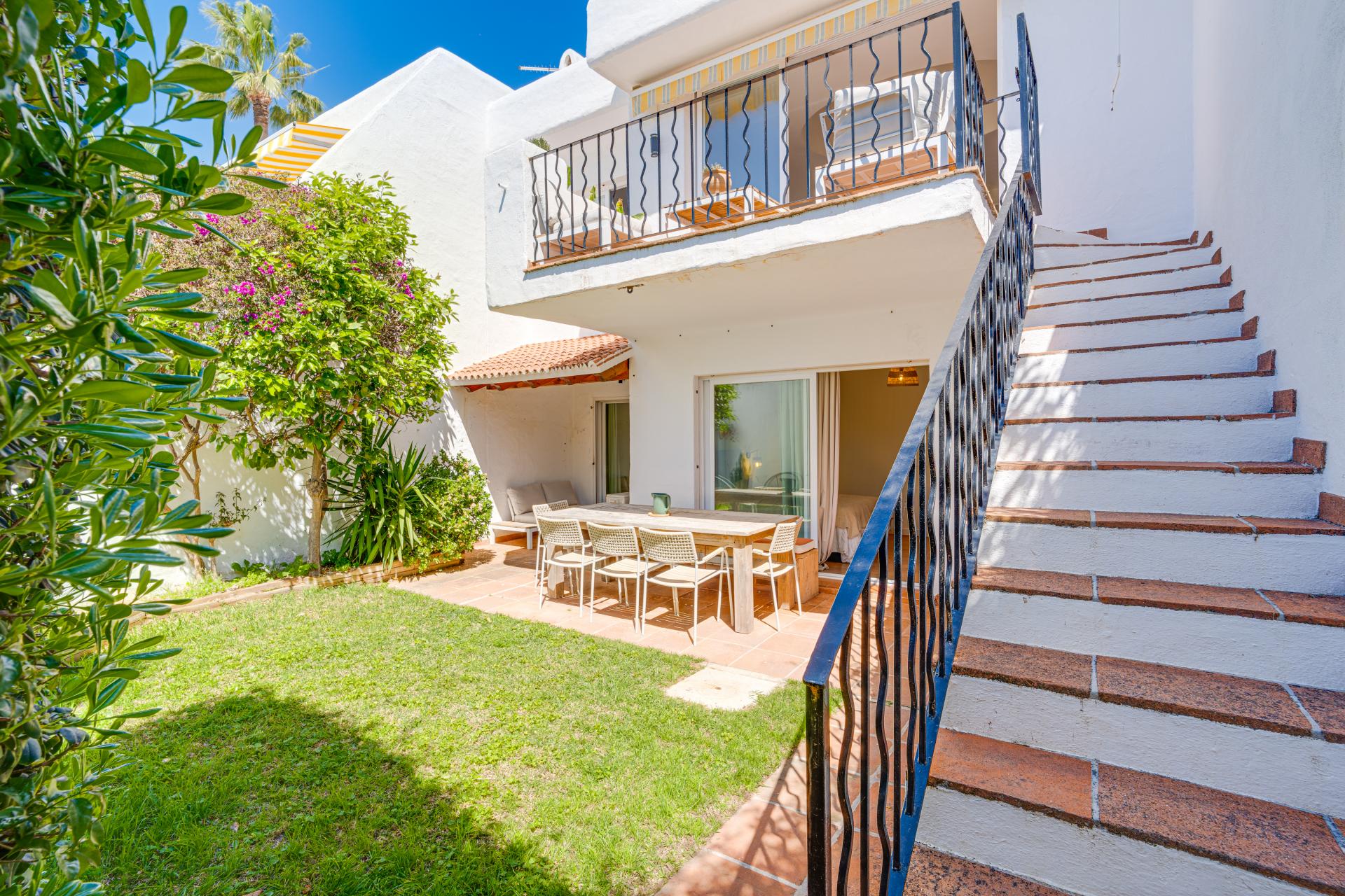 Belle maison de ville de trois chambres orientée sud-est située dans le quartier recherché de Cabopino, Marbella, au sein d'une paisible communauté fermée à seulement quelques minutes en voiture de la plage et de la marina. La propriété dispose d'un lumineux espace de vie ouvert et de salle à manger qui mène directement sur un jardin privé et une terrasse, idéal pour profiter du style de vie méditerranéen. Il comprend trois chambres et deux salles de bains, avec deux des chambres ayant un accès direct au jardin, et offre également la possibilité de reconfigurer la disposition pour créer jusqu'à cinq chambres. La propriété est livrée avec une licence de location touristique existante, permettant une utilisation immédiate de location à court terme dans une zone avec une forte demande tout au long de l'année. Les résidents ont également accès à une piscine commune à proximité, et l'emplacement offre un accès facile à l'aéroport de Malaga, au centre de Marbella, à Puerto Banus et à plusieurs terrains de golf à quelques minutes, ce qui en fait une excellente option pour une utilisation personnelle ou une opportunité d'investissement.