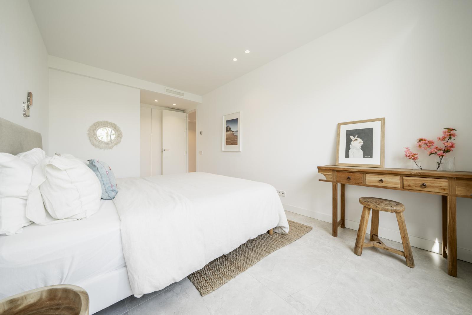 Het appartement beschikt over inbouwkasten, moderne badkamers, een privétuintje met directe toegang, twee ondergrondse parkeerplaatsen, een berging en 24-uurs beveiliging binnen een afgesloten gemeenschap.