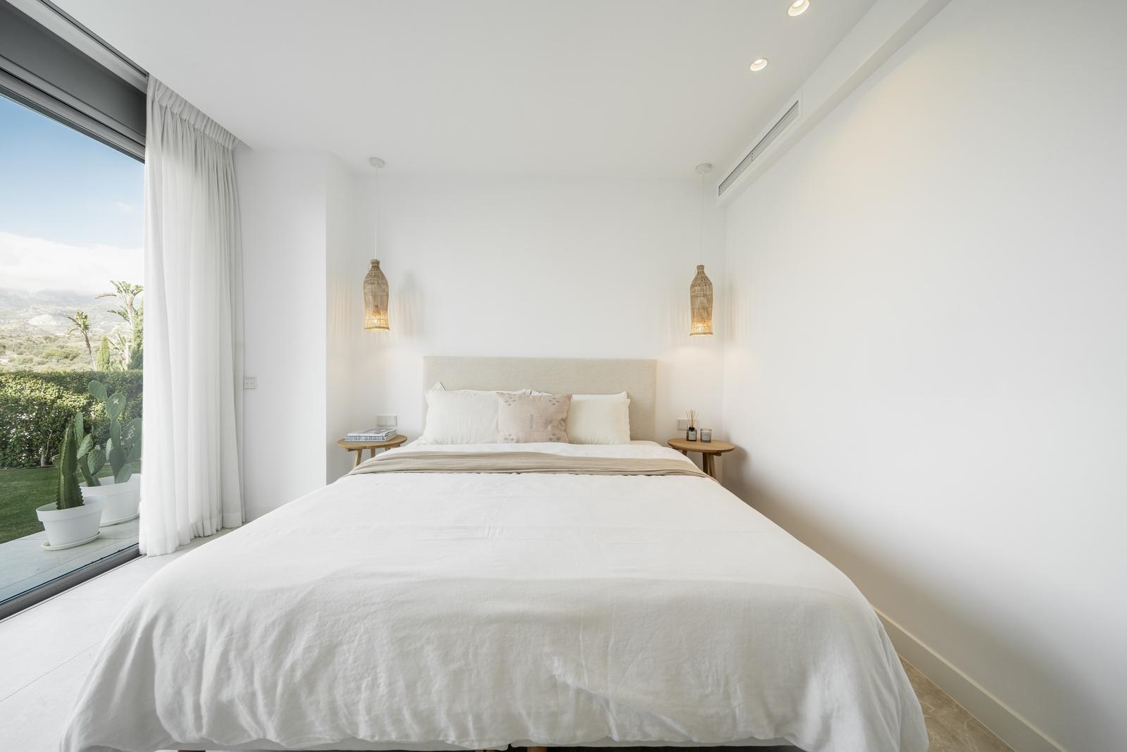 Welkom in dit prachtig gemeubileerde hoekappartement op de begane grond met vier slaapkamers en drie badkamers, gelegen in het exclusieve Soul Marbella Sunset. Met een ontwerp dat geïnspireerd is op Ibiza, combineert het moderne luxe, natuurlijk licht en een naadloze overgang tussen binnen- en buitenleven. De open woonkamer en eetruimte sluiten aan op een eigentijdse keuken en geven toegang tot een privétuintje met een glimp van de zee — de ideale plek om te genieten van de mediterrane sfeer van Marbella.